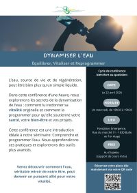 Explorez les secrets de la dynamisation de l’eau : comment lui redonner sa vitalité originelle et comment la programmer pour qu'elle soutienne votre santé, votre bien-être et vos projets.